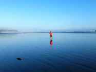 I’m not sure what tide it was, but the water in this area was pretty shallow and was creating some great reflected images. KC had run out to touch an island, where there was a small, hard to see, land bridge. Waves broke to either side of him. This is just an artsy picture of him running back from the island.