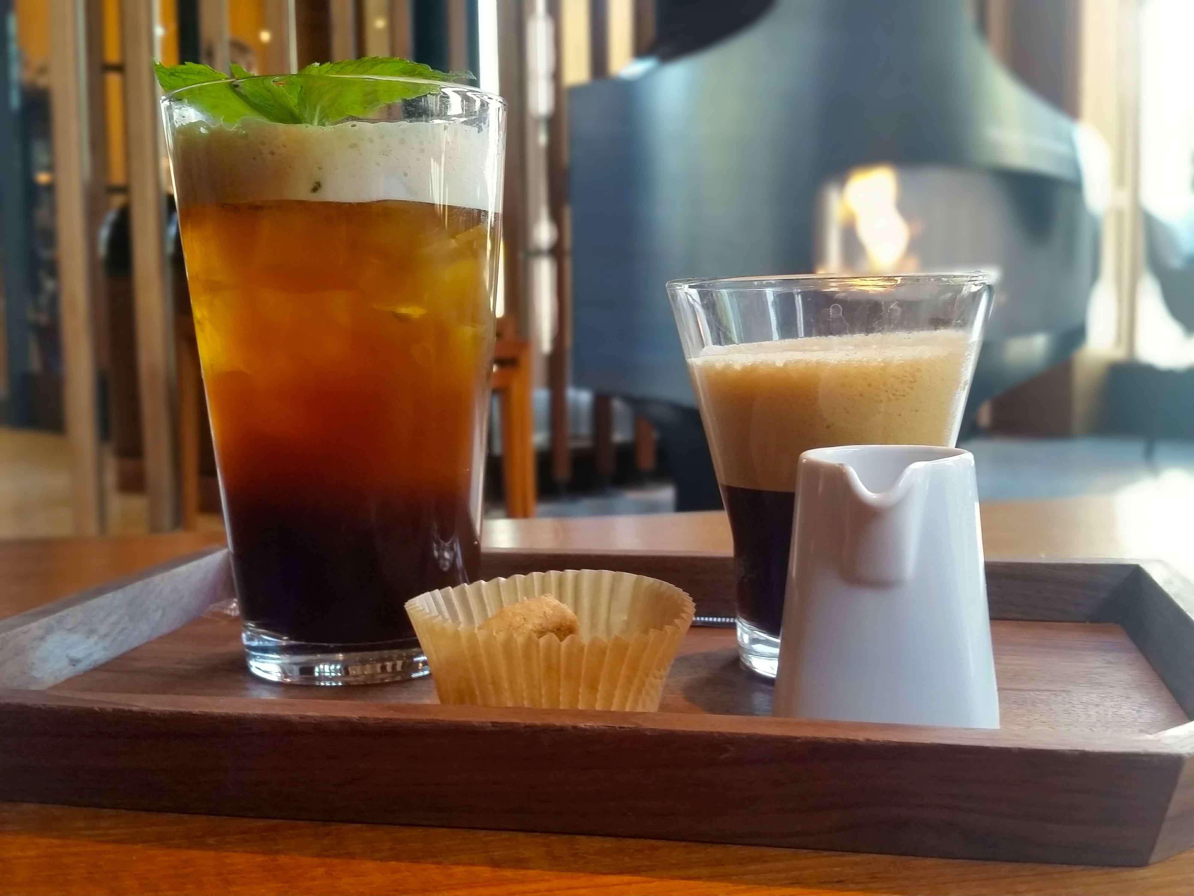 This bar served specialty espresso drinks, not on the menu at other Starbuck stores, in addition to reserve coffee. KC ordered a shakerato (espresso shaken over ice with a hint of demerara syrup) and I ordered a sparkling mint iced coffee (espresso, mint and demerara syrup, served over ice with sparkling water). KC and I found a couch across from a fireplace, since there were no seats at the bar. I tried my sparkling mint iced coffee, unsure what to expect. The light sweet mint complimented the espresso’s dark earthy coffee flavor and the sparkling water gave the drink a fizzy texture, like a soda. KC’s shakerto was cold lightly sweetened espresso. Having seen the roasting equipment and tried both their coffee and espresso drinks, the four of us left the Roastery and Tasting Room more alert and with soon-to-be full bladders.