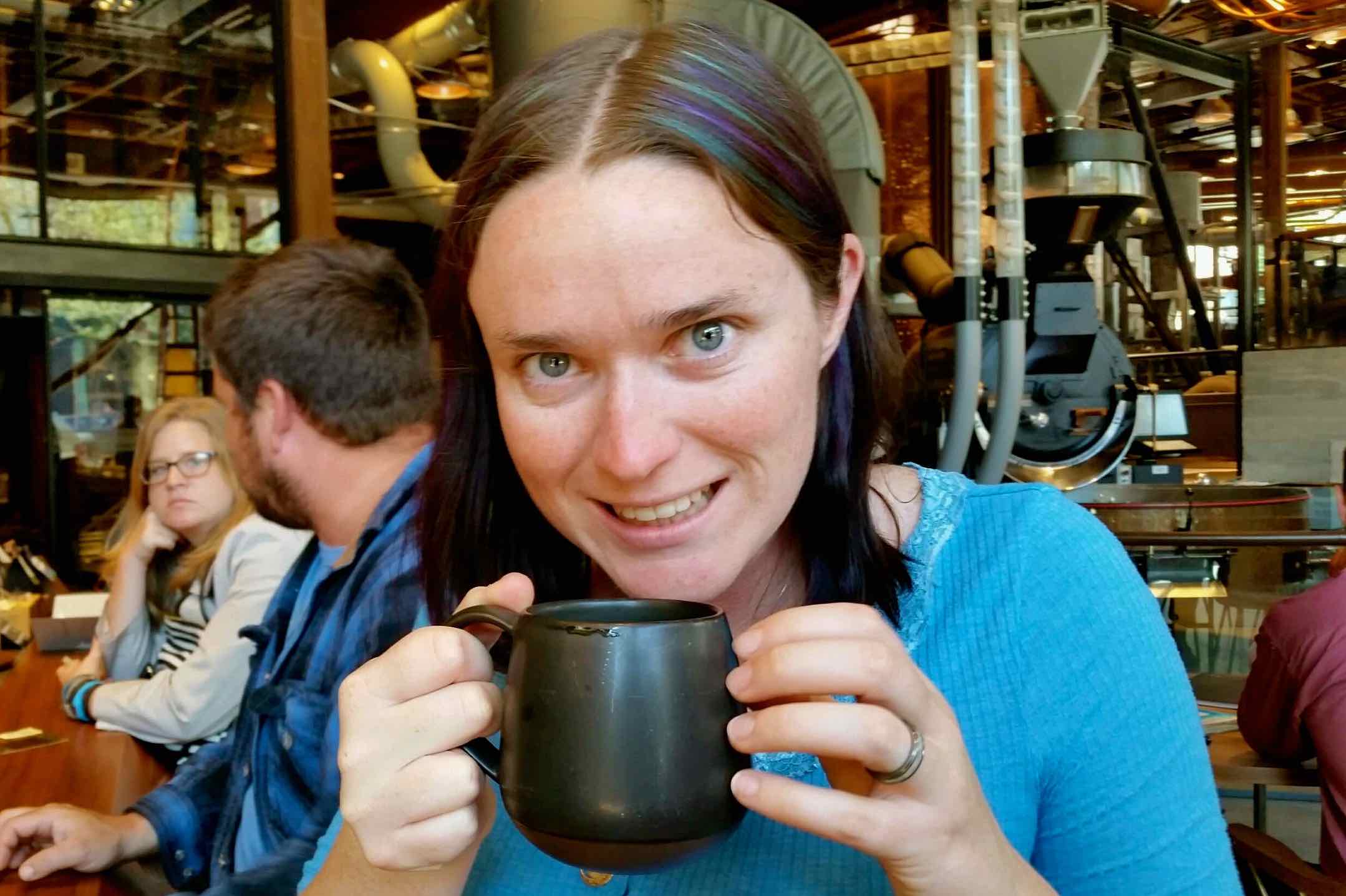 The ferry docked in Seattle and we wandered around Pike’s Market for an hour or so before we went to lunch. I was tempted to get a cup of coffee at the first Starbucks store, but waited. After the four of us had a great lunch, my dad said that it was finally time to go to the Starbucks Roastery and Tasting Room. “Now you can have your cup of coffee,” he teased.