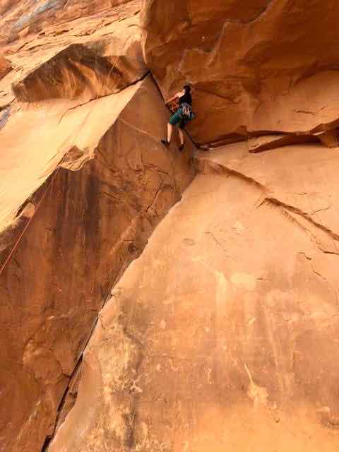 Sarah on Bad Moki Roof Published June 10, 2015 at 480 × 640 in “Do you want to climb with us in Moab?” ← Previous Next → A picture of me as I navigate climbing past the roof. Bad Moki Roof, 5.9 Trad Route Photo Cred: Sara Jo Dickens. Bad Moki Roof is a Trad 5.9 route in Potash, near Moab, UT. This was a fun climb.