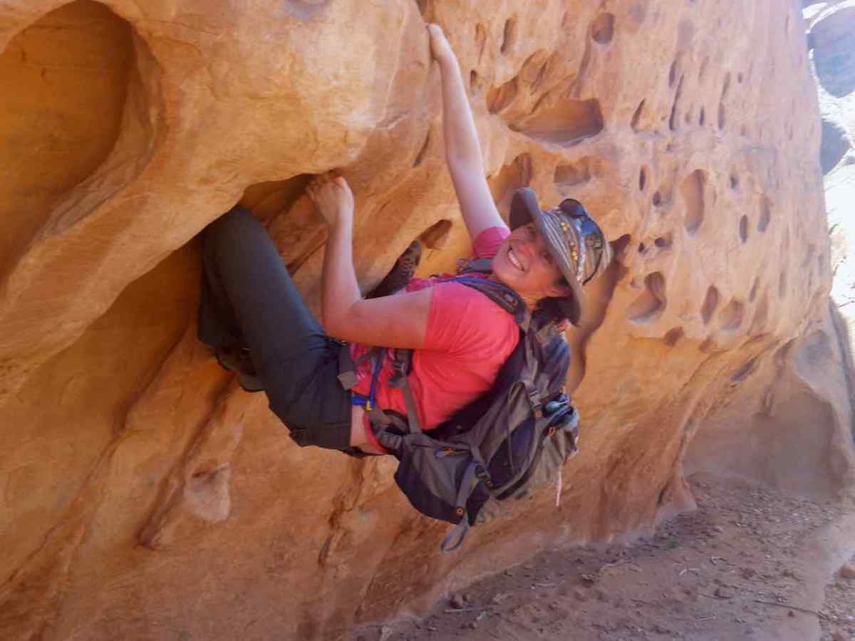 We weren’t sure if we could climb on the rock in this area, but the holds were too good to pass up. At first, I didn’t bother to take off my pack because I was so distracted by the rock (and also so I could run if the ranger showed up). ;)