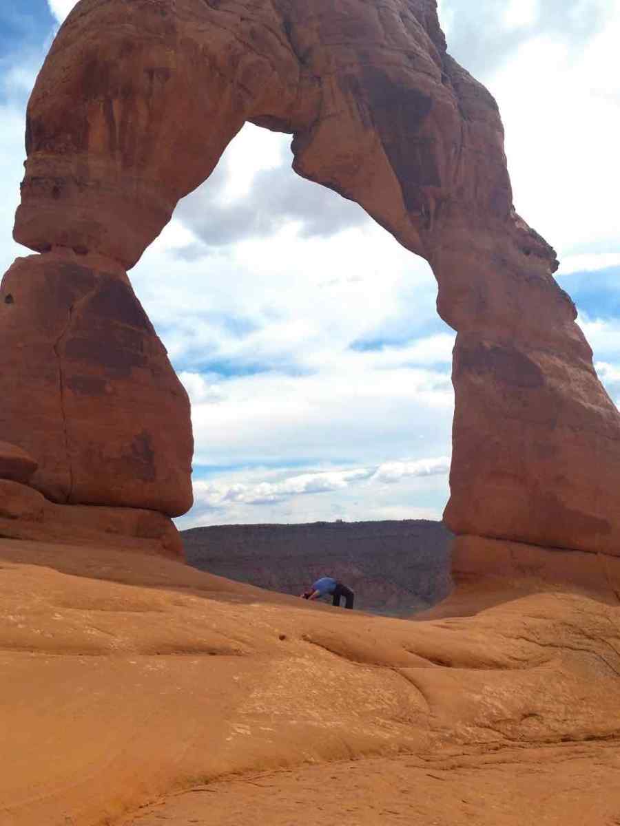 Two Arches Published June 10, 2015 at 960 × 1280 in A Desert Wonderland – Hiking Around Arches National Park ← Previous Next → KC does an bridge pose under the Delicate Arch