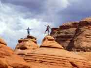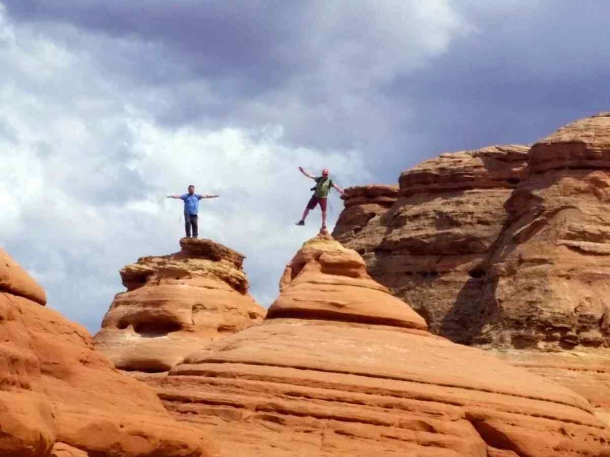 Goofballs Published June 10, 2015 at 1280 × 960 in A Desert Wonderland – Hiking Around Arches National Park ← Previous Next → KC and Brian balancing on top of rock formations near the Delicate Arch