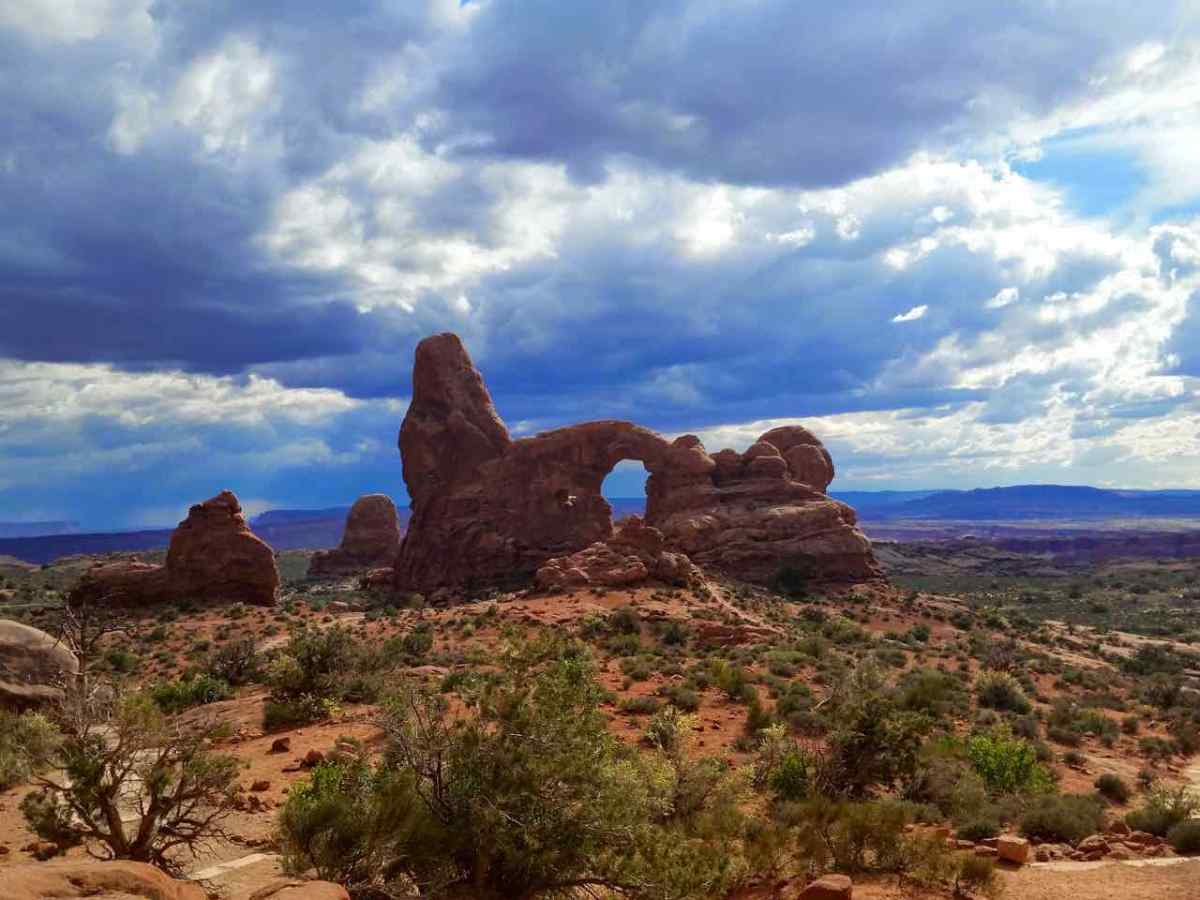 Turret Arch Published June 10, 2015 at 1280 × 960 in A Desert Wonderland – Hiking Around Arches National Park ← Previous Next → Turret Arch at Arches National Park Turret Arch is located across from the windows and is so named for the tower to the left of the arch.