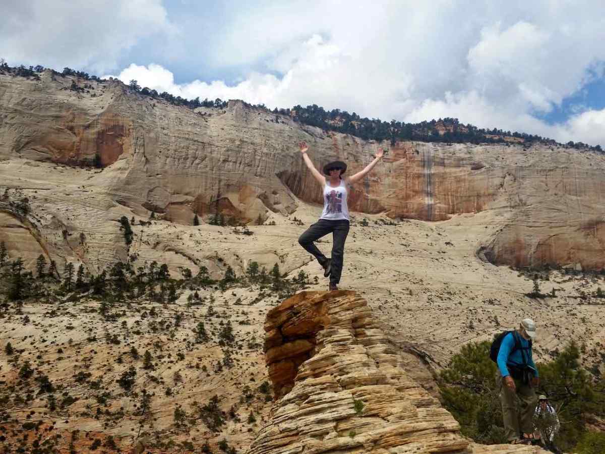 A Yoga Pose Atop Angels Landing Published June 26, 2015 at 1280 × 960 in Angels Landing and Narrows – Zion National Park ← Previous Next → I pose atop the hike with a thousand foot fall on one side Goofing off