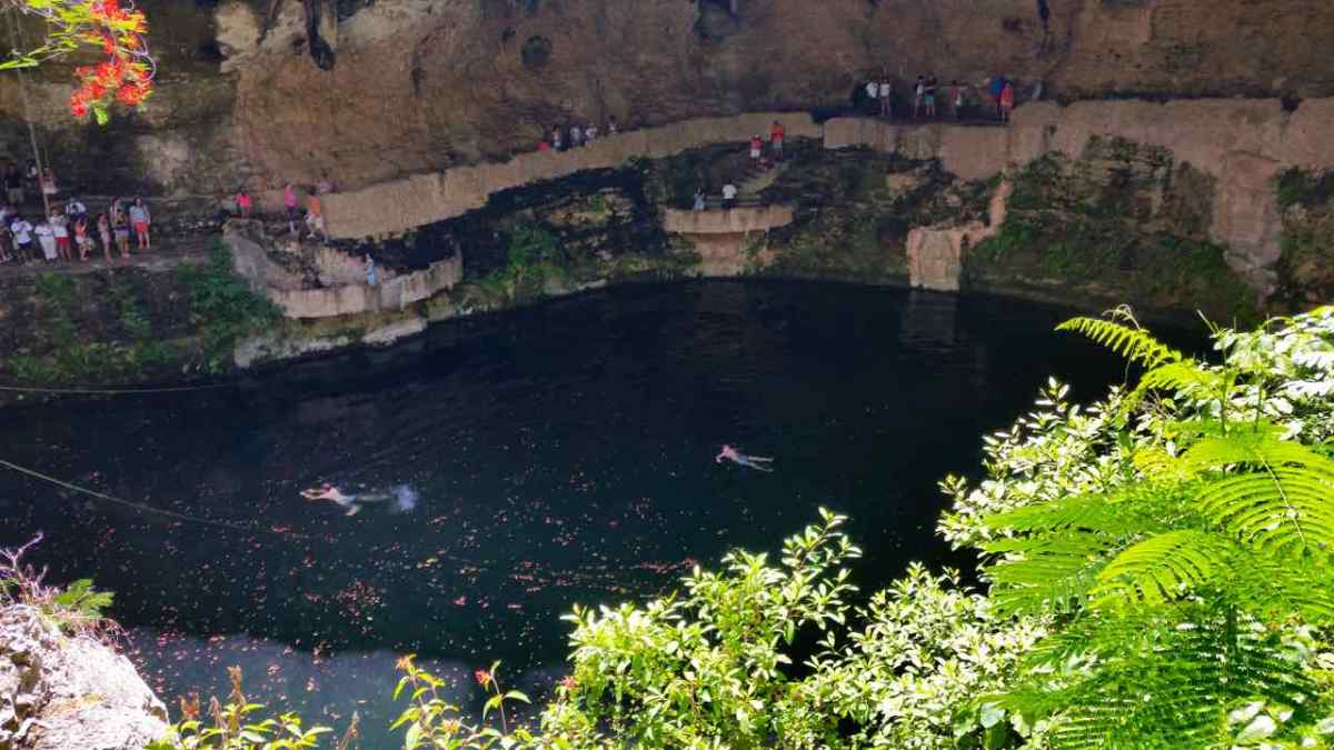 Swimmers in the Cenote Published September 10, 2015 at 1280 × 720 in Exploring Cancun Part 2: Chichen Itza ← Previous Next → The swimmers just jumped from the ledge into the cenote