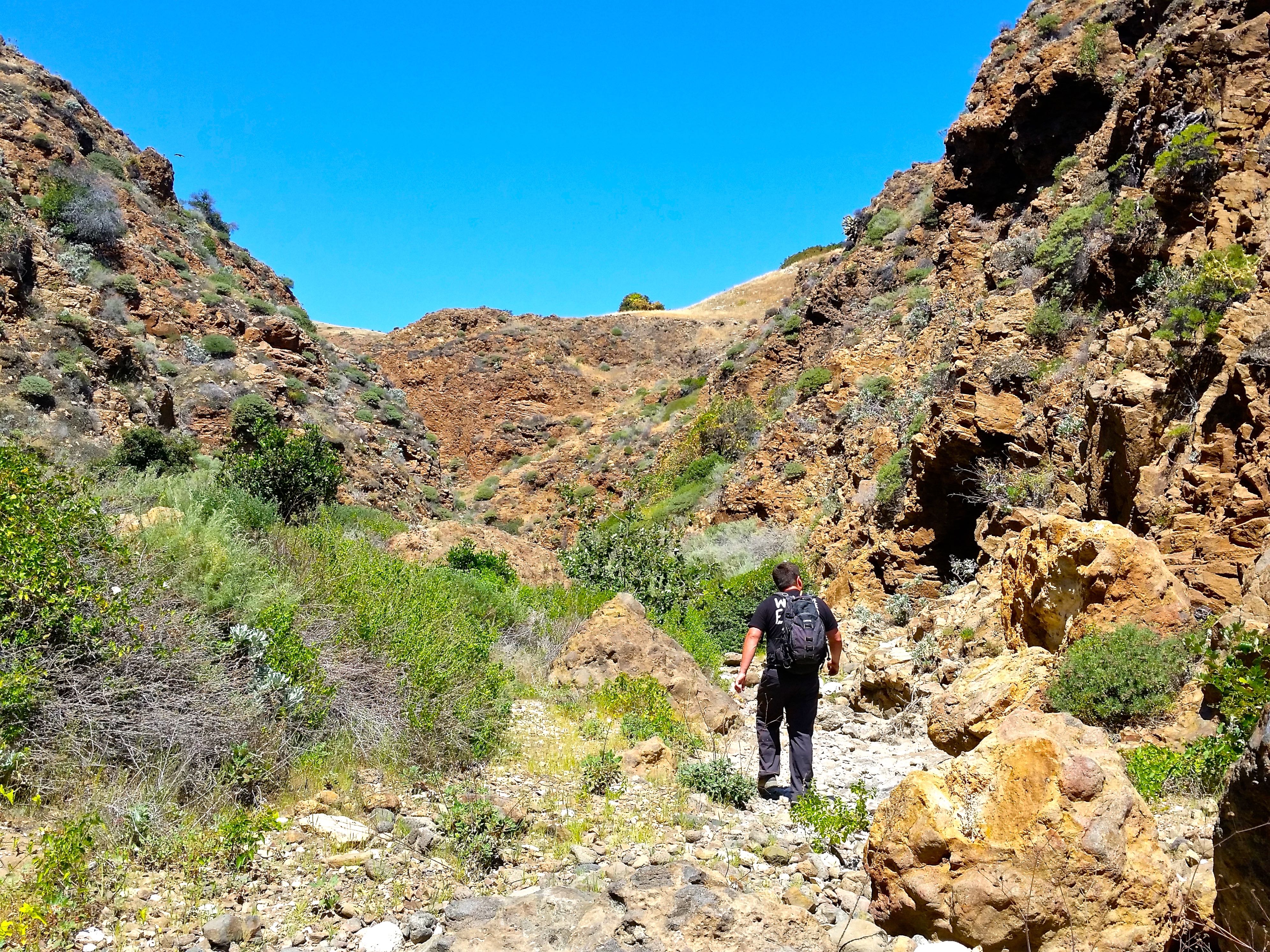 Hiking Smuggler’s Canyon Published April 20, 2015 at 3984 × 2988 KC at the start of the Smuggler’s Canyon Trail There’s no official trail for this hike. The guide states that the streamed should be followed for about a mile.