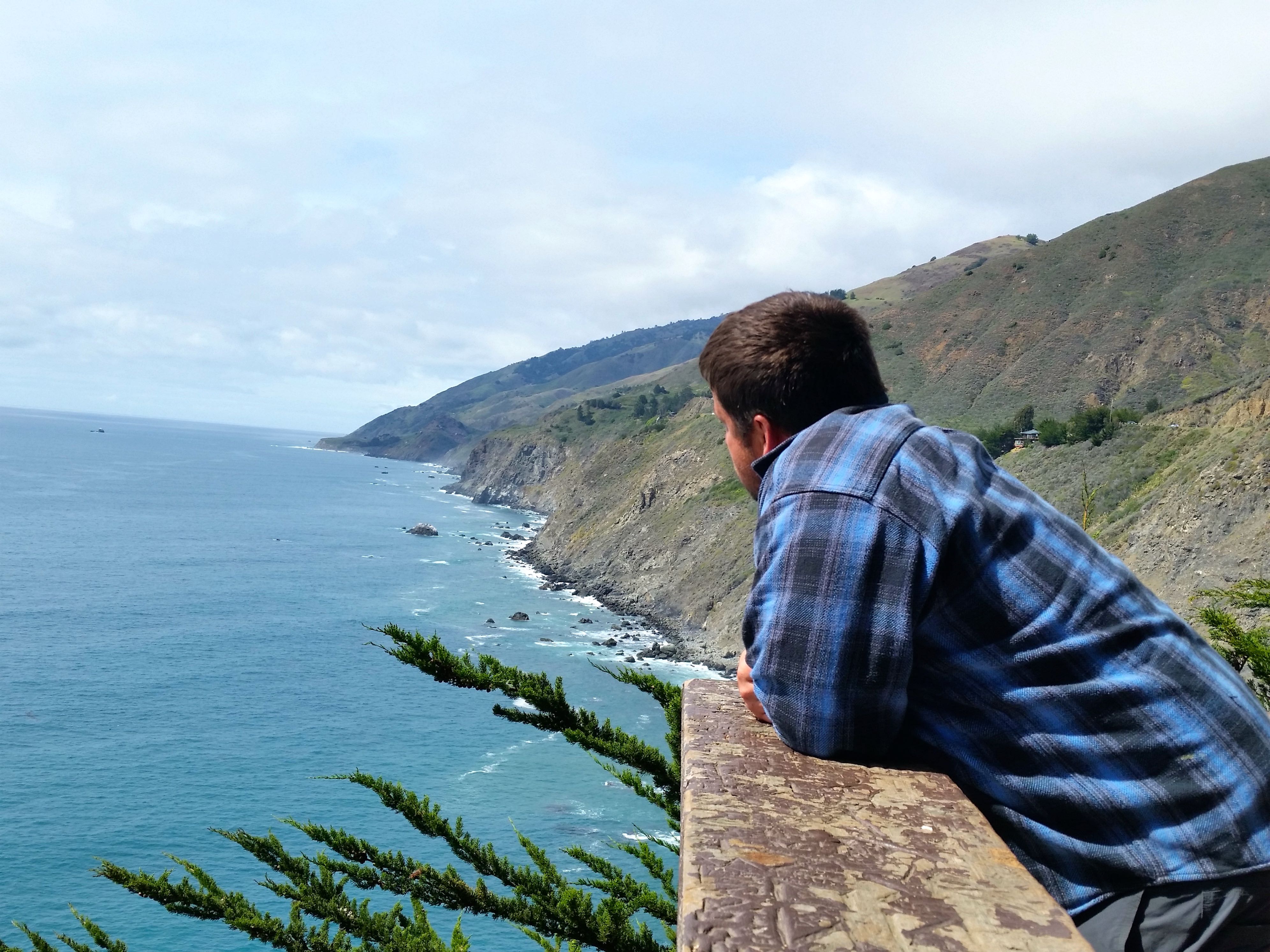 Thoughtful in Big Sur Published April 20, 2015 at 3984 × 2988 KC looking over the view Just entering Big Sur, we stopped for a bathroom break and got this amazing view.