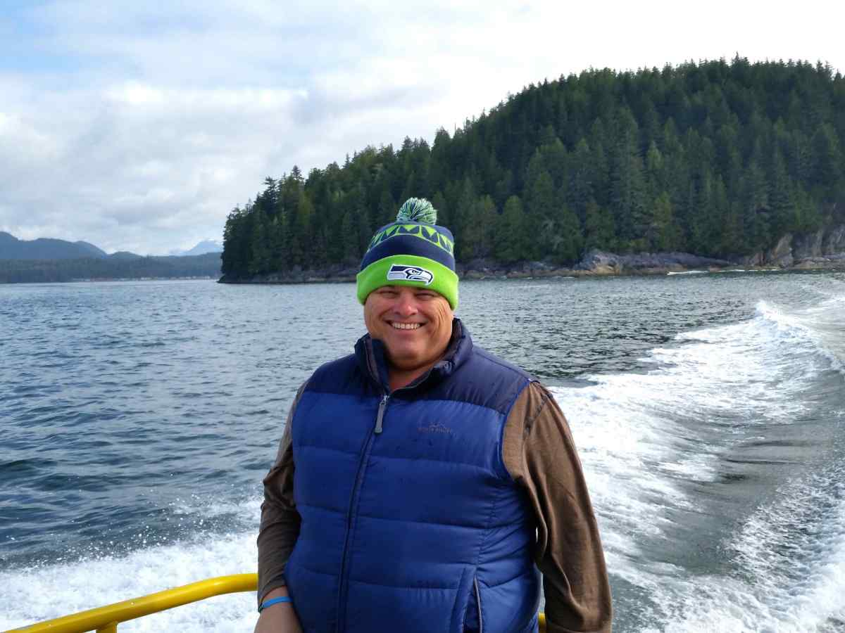 Dad on the Boat Published May 9, 2015 at 3984 × 2988 Dad on the boat on the way to Tofino To get to the hot springs, you need to either take a boat or plane. We opted for the cheaper option and took the boat. Dad seemed to enjoy riding out the waves in the back open part of the boat.