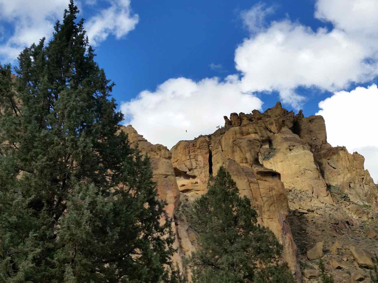 High-Rope Walker Published May 20, 2015 at 1280 × 960 A view from below of the high-rope walker. The walker is the dot in the clouds. You can barely see the line in the air that is the slack line.