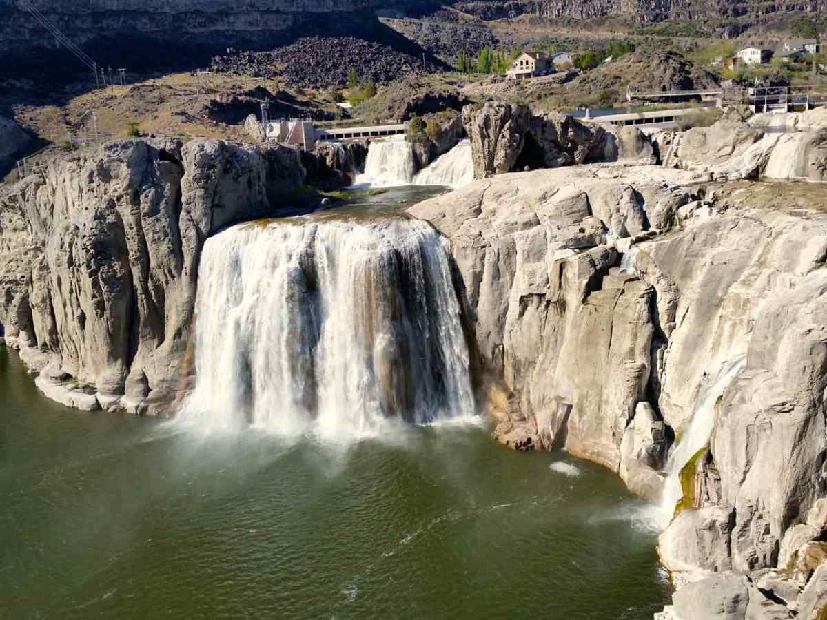 Between construction and low water flows, only a third of the waterfall was flowing (I saw pictures of the waterfall covering the rocks to the right of the pictured waterfall as well as the flow shown here). With a diminished waterfall and no hike (the parking lot was next to the overlook), I was unhappy that we paid $3.