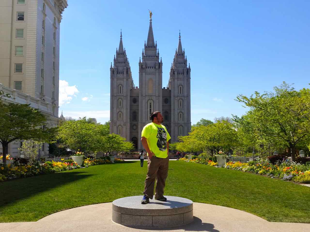 KC in front of the Mormon Temple Published June 10, 2015 at 1280 × 960 There is a pedestal photo opportunity in front of the Temple