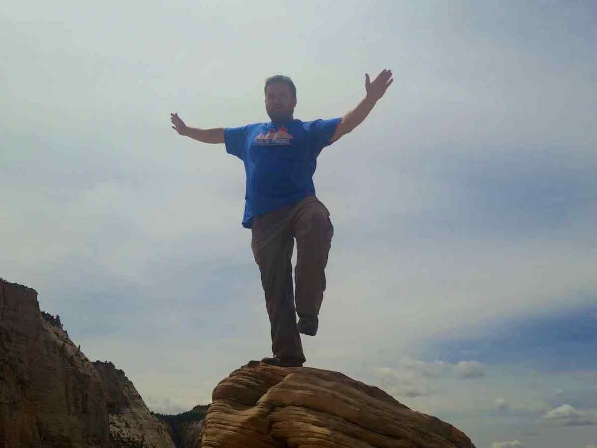 KC Balancing Atop Angels Landing Published June 26, 2015 at 1280 × 960 A yoga pose on top of Angels Landing A thousand foot fall on either side, KC balanced for yoga photo.