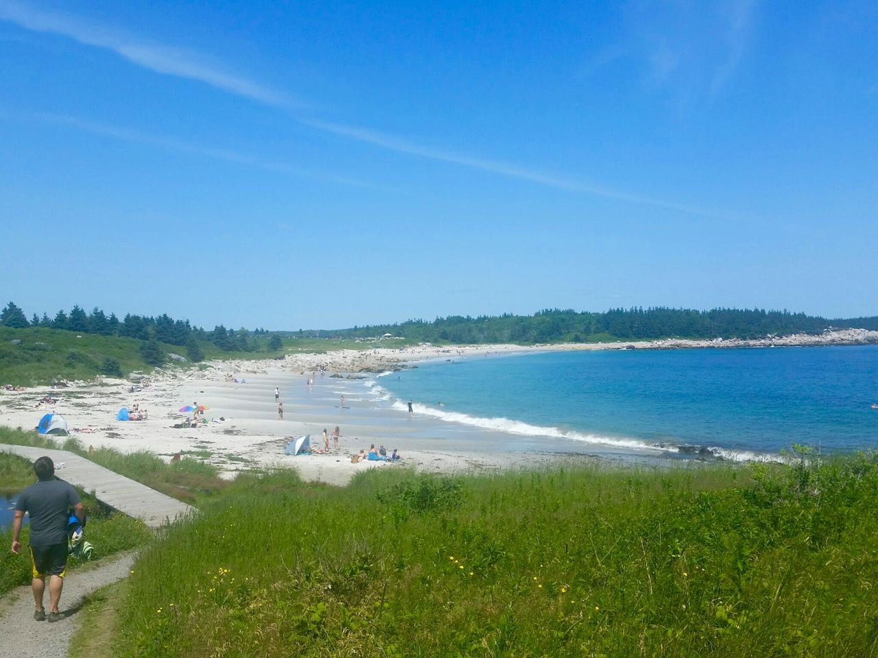 The next day, we spent the afternoon at this beach, just outside of Halifax. The stillness of the water with the occasional big granite rock reminded me of Lake Tahoe, but the color of the water and the sand reminded me of the Caribbean. That blew me away – how could a beach in Canada remind me of a tropical Caribbean beach? (see Part 2)