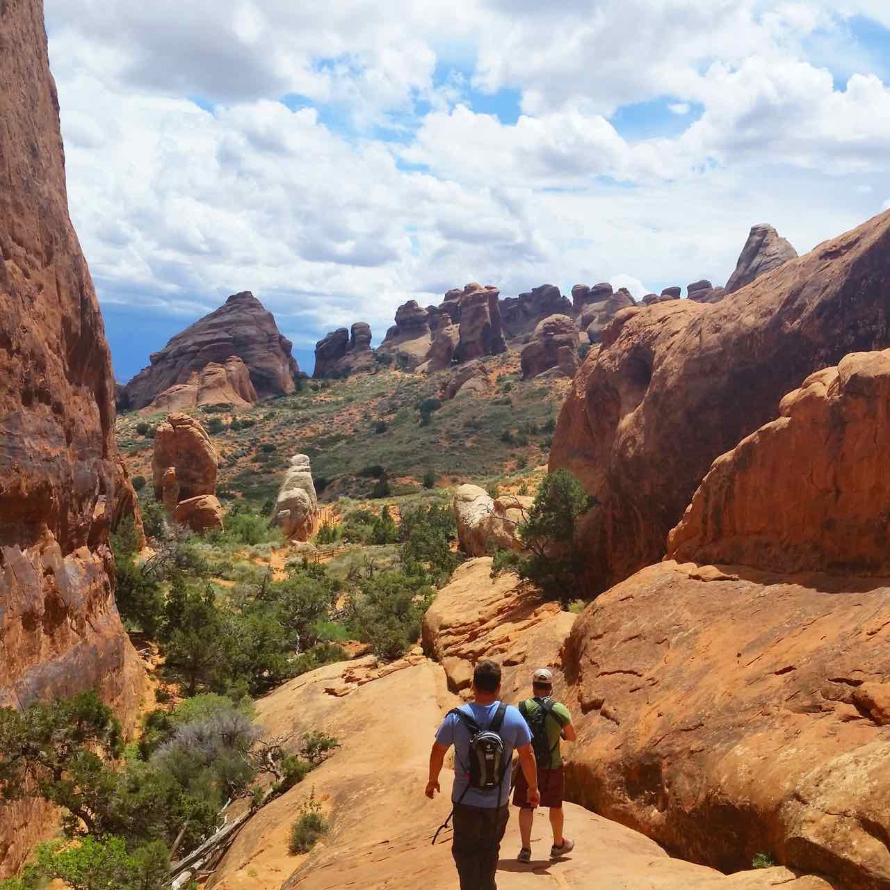 KC and Brian Hiking in Arches National Park Published June 10, 2015 at 1280 × 1280 KC and Brian Hiking in back to the parking lot from the Navajo Arch. This area is known as the Devil’s Garden.